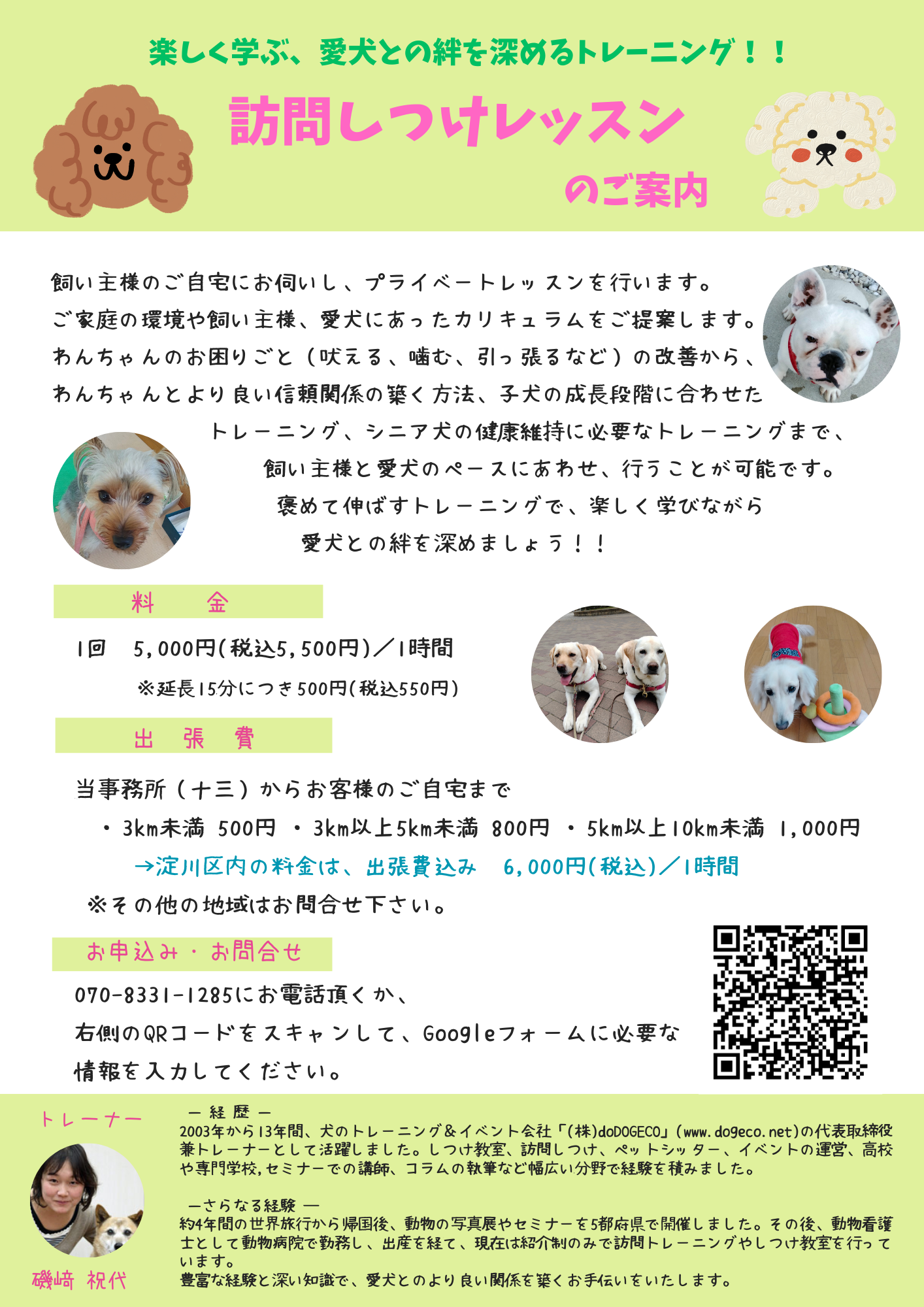 当院のパピー教室講師による、しつけ訪問レッスンを始めました。