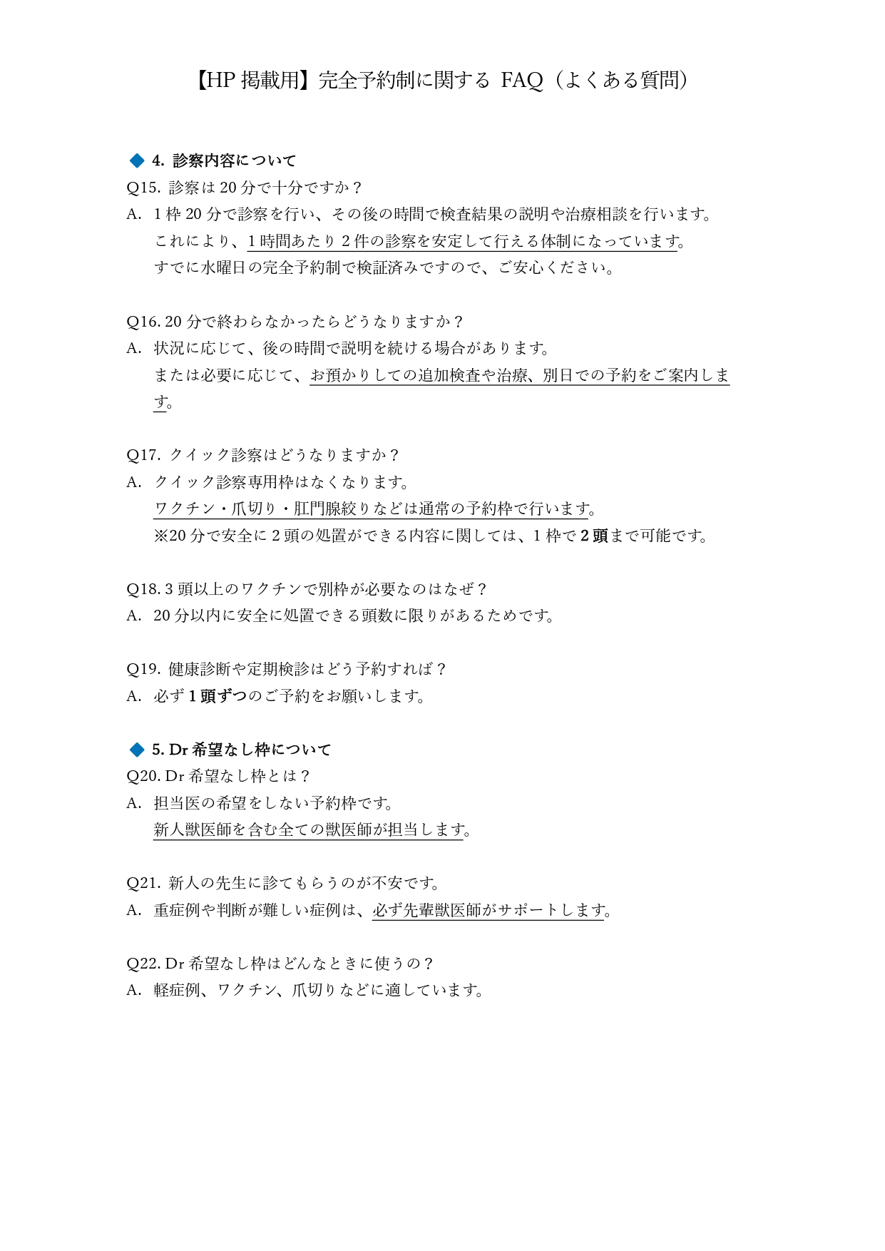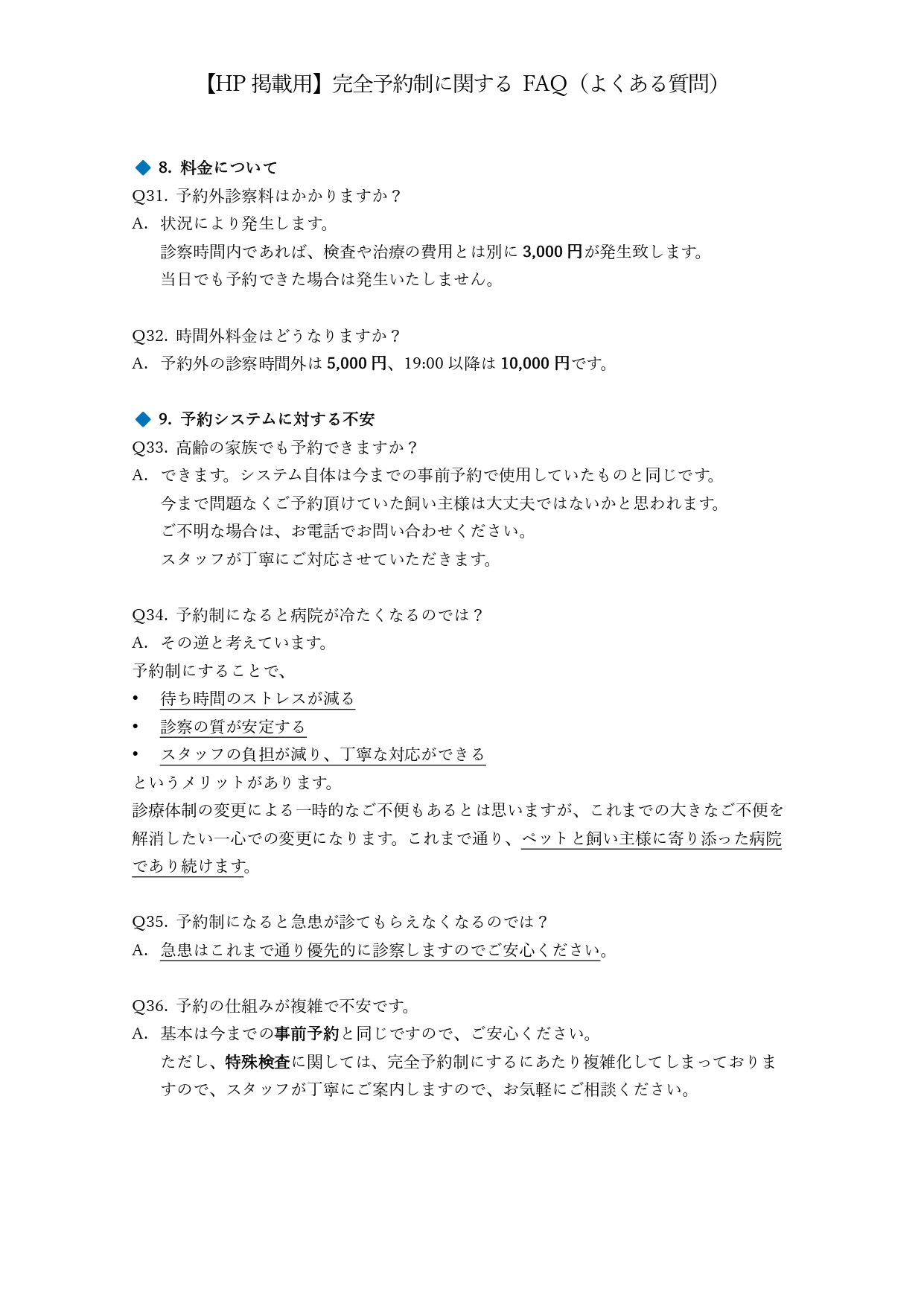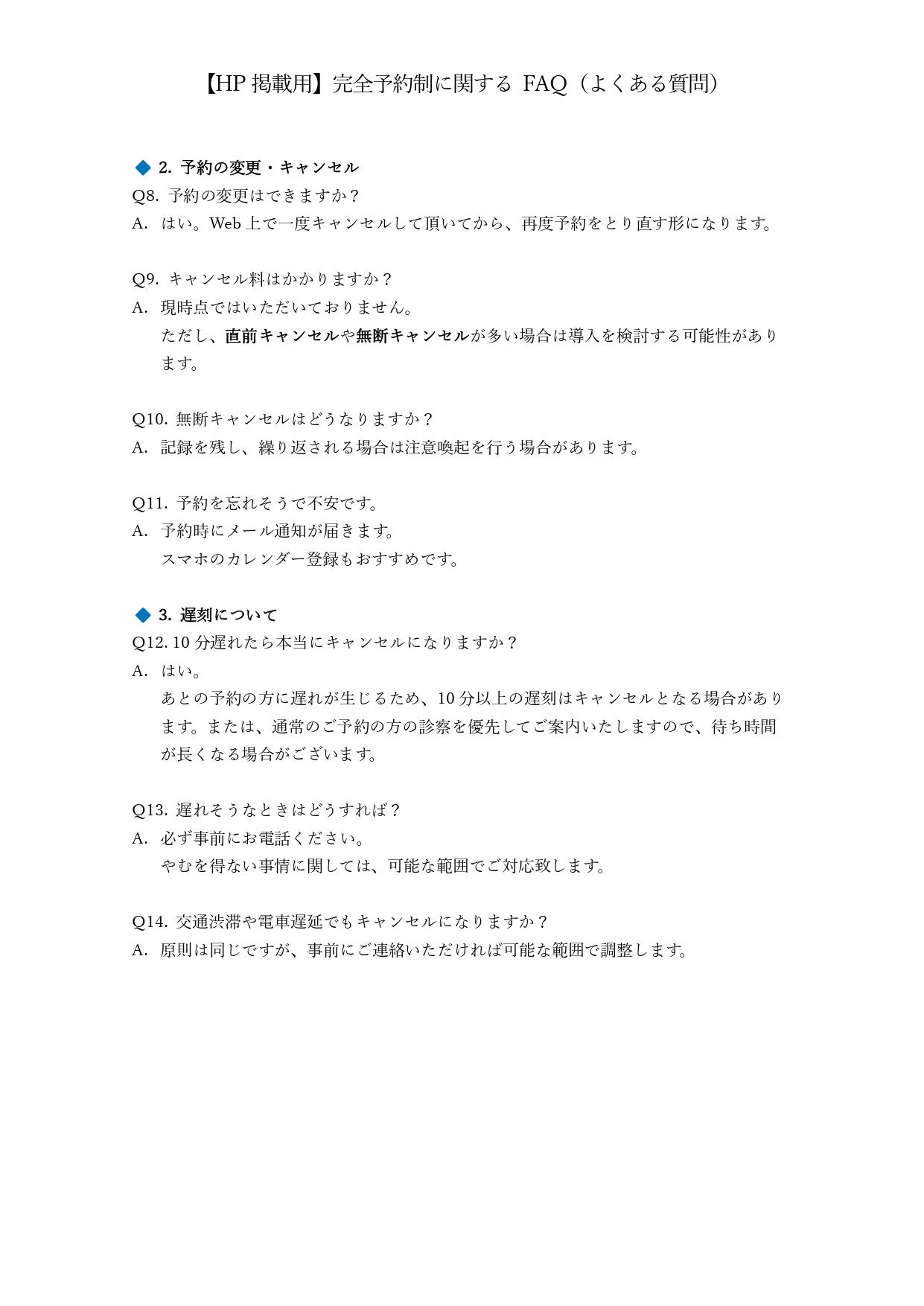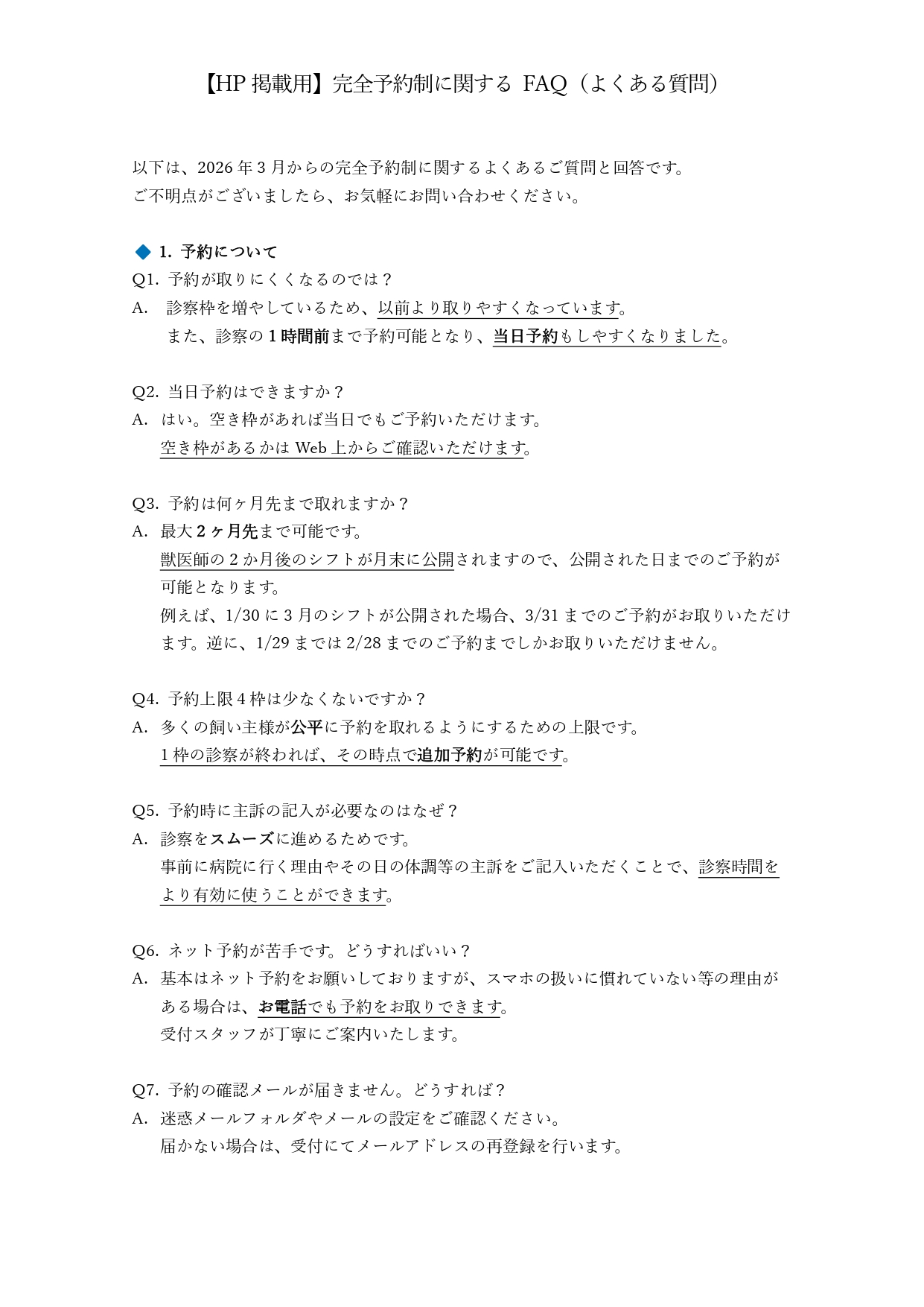 ※重要※完全予約制への移行に関してのQ&A