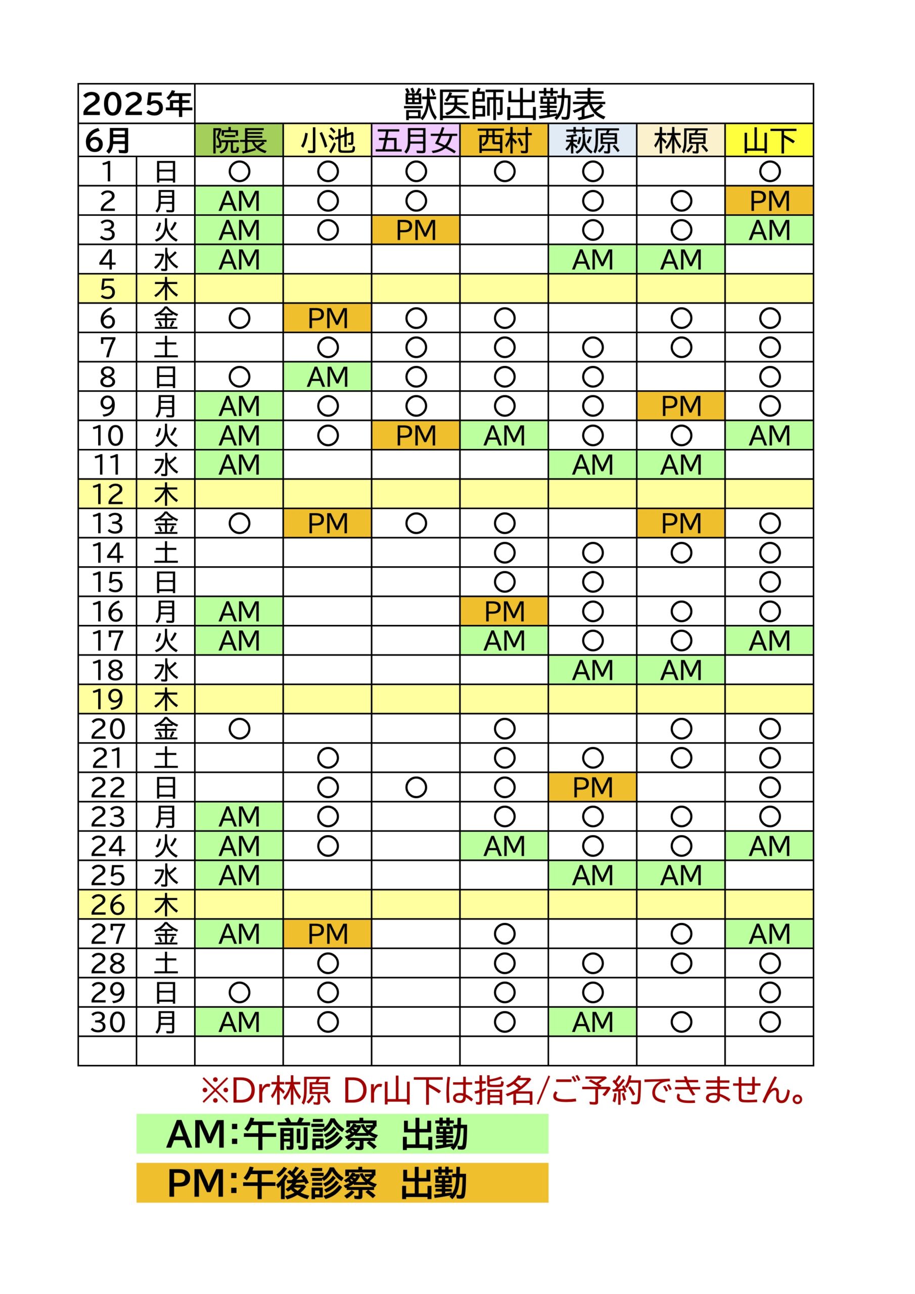 6月 獣医師出勤表