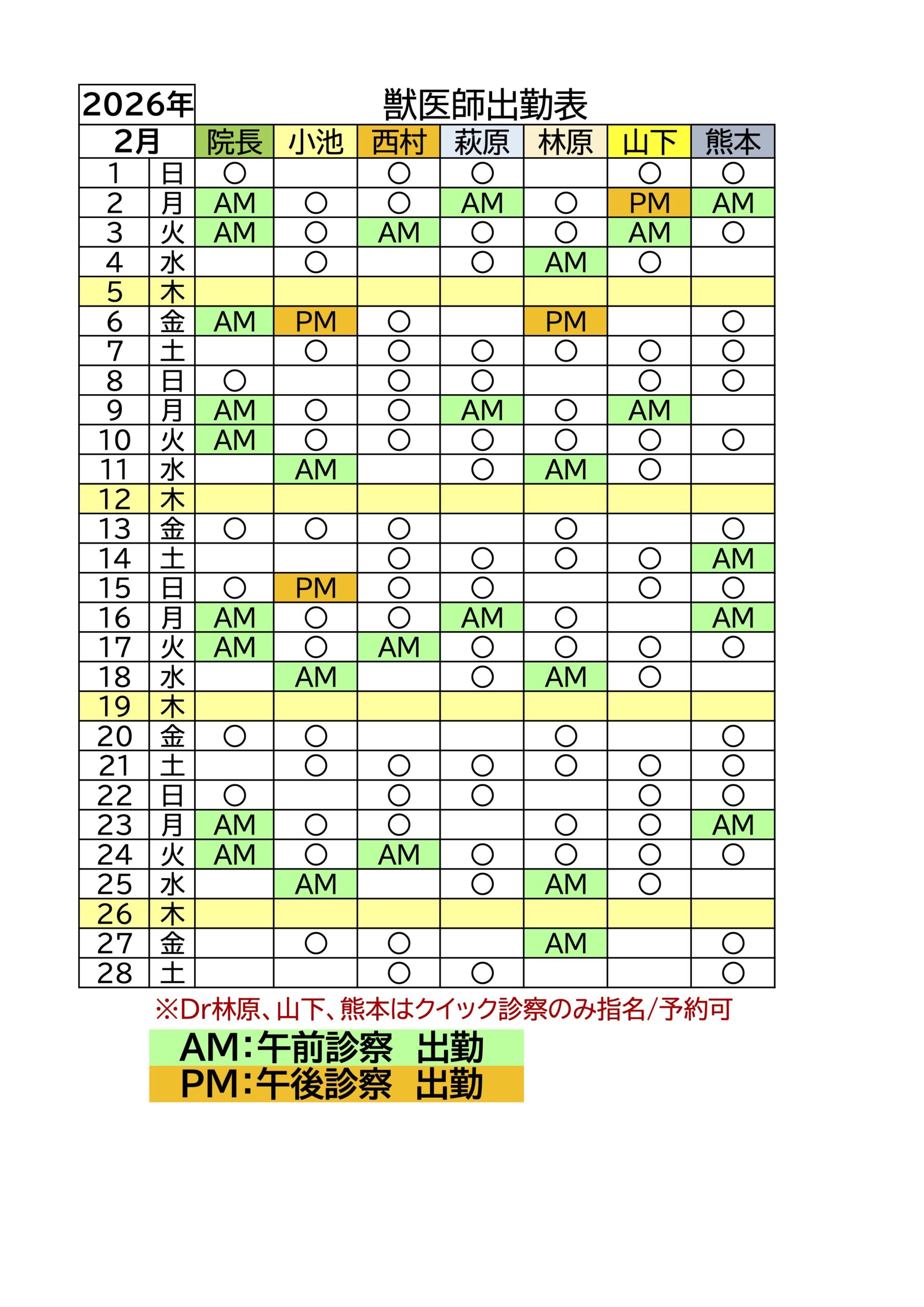 2月 獣医師出勤表